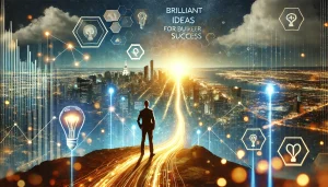 DALL·E 2025-02-26 19.50.03 – An inspiring and futuristic background image for a web article titled ‘Brilliant Ideas for Business and Career Success’. The image features a futurist
